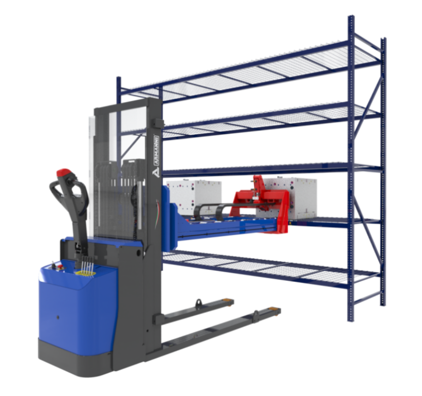Armanni 继续说道:“使用电动工作台 -- 可以接近机器、抬起工作台、取出模具、降低负载并移动到存储区域,无论它在哪里,甚至在另一个仓库中。全部使用一个工具。“