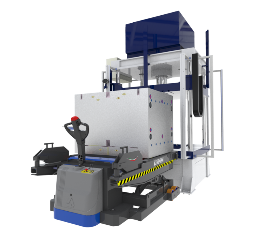 作为每天搬运此类产品的角色,Armanni已经能够根据模具类型开发不同的模型。例如,叉车和堆垛机已被重新解释为可伸缩的滚轮系统,用于直接从机器上抓取模具。