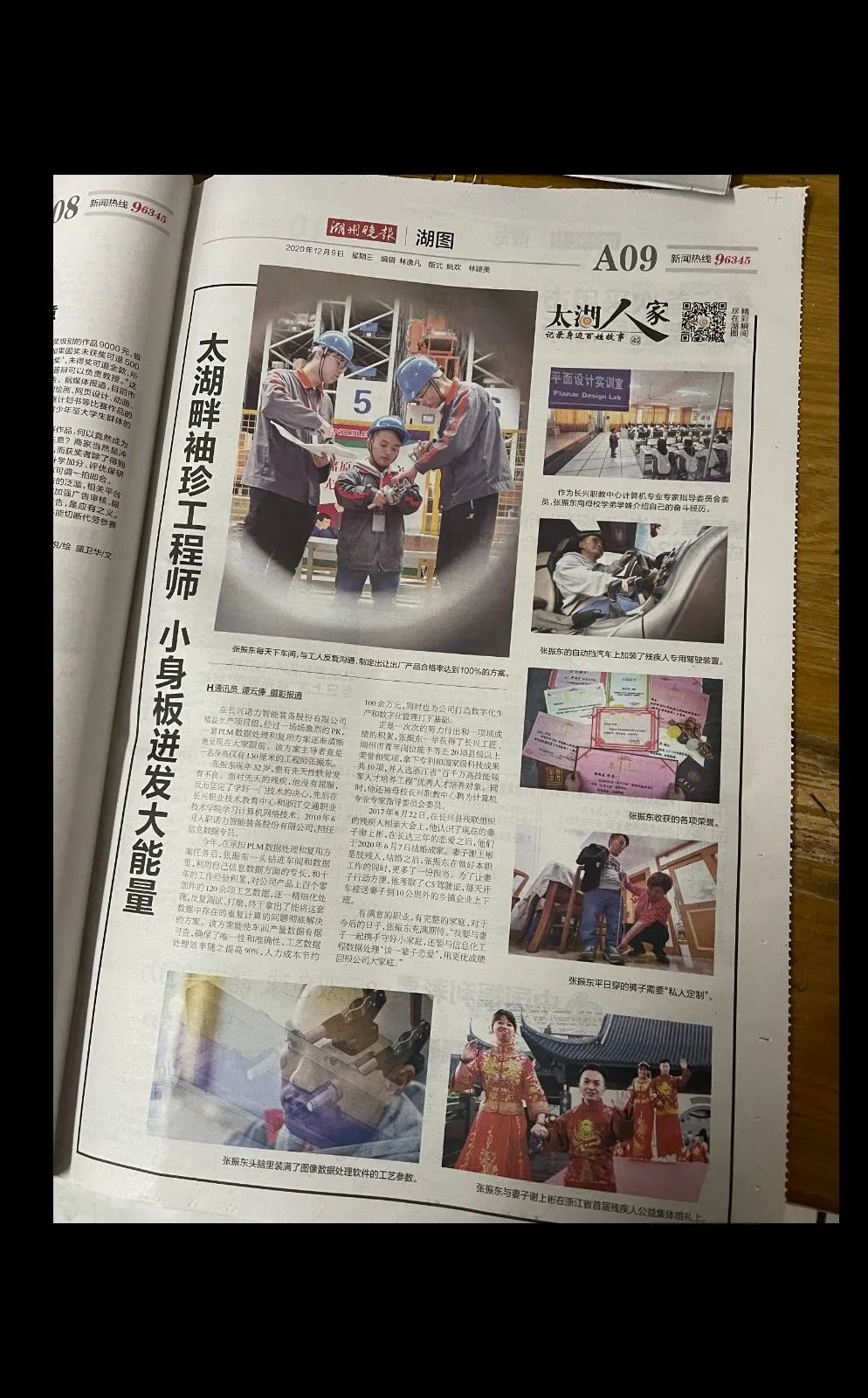 在诺力智能装备股份有限公司,有这么一位特殊的员工可以说无人不知、无人不晓。他虽然身高不过1米3,年纪也不大,但小小的身体里却迸发出了强大的能量,凭借着一股子不服输、不怕难的精神,在工作上有所作为,获得了“浙江工匠”、“湖州好人”、“长兴县十大杰出青年”等荣誉称号,他就是工艺部工程师张振东。