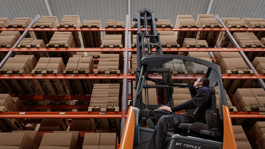 如果您想让操作员将选定的物品直接放置在货叉上的货盘上,则穿行式设计是理想的选择。