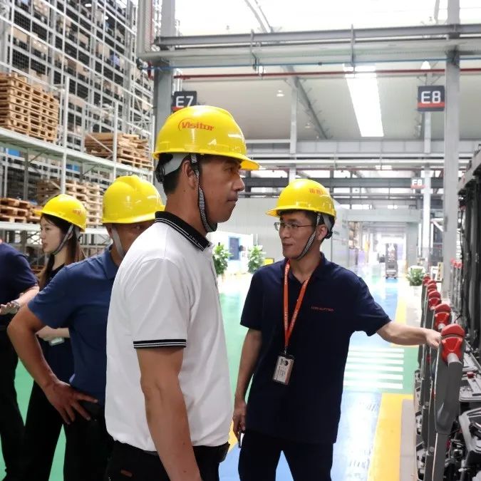 梁梅芳向各企业家们简单地介绍了诺力的发展历程,并陪同各企业家们参观了四期工厂生产车间。