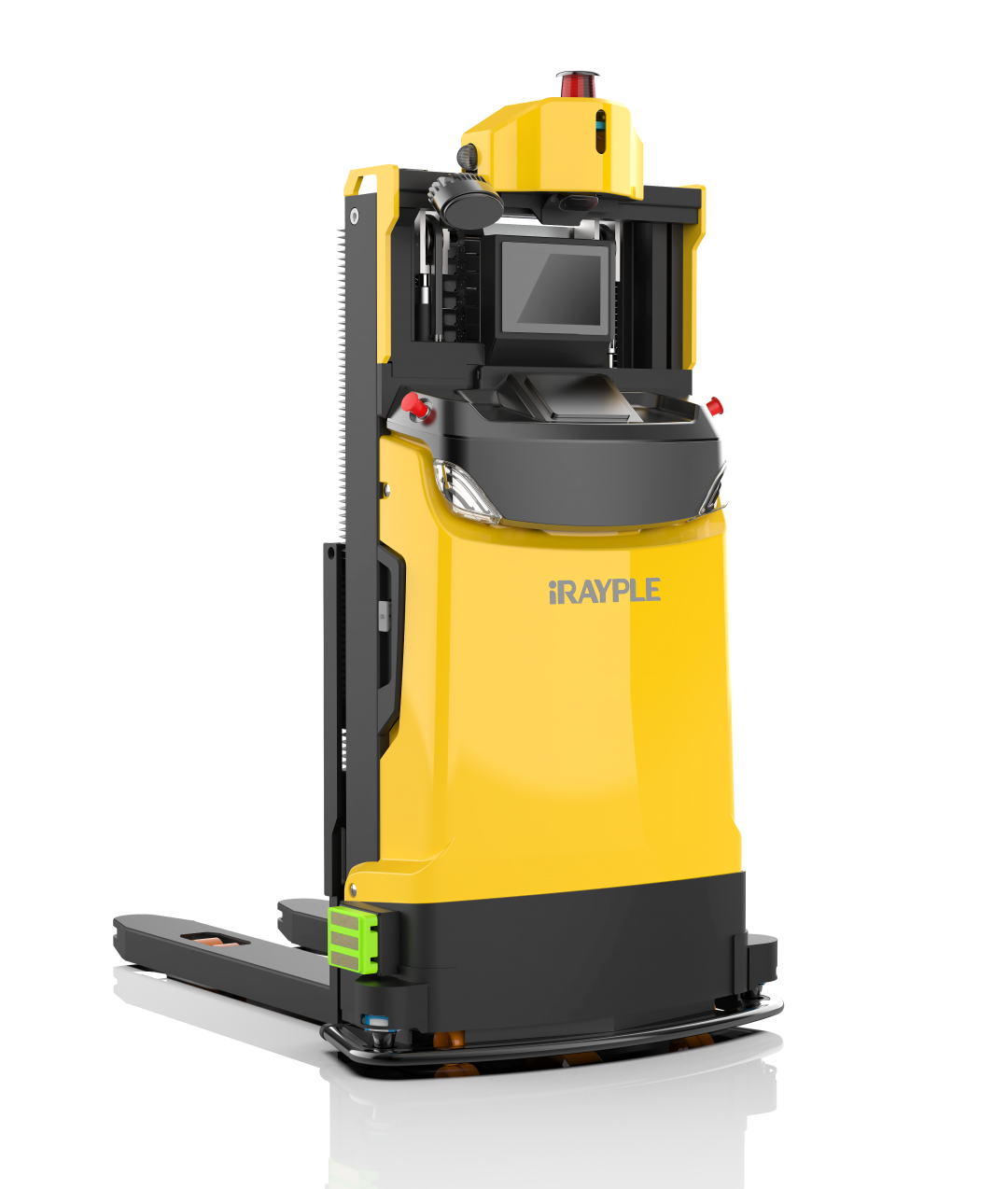 窄通道堆高式叉取型AMR,可以满足托盘,笼车,货架等载具的地推搬运、传输线对接、上架存储。适用于仓储、汽车、汽配、食品、液晶、新能源、3C、包装等各个行业的物料上线,成品下线,车间转运,上架存储,传输线对接等多个场景。可以满足普通线边送料,也可以支持地堆或步入式货架等密集存储。