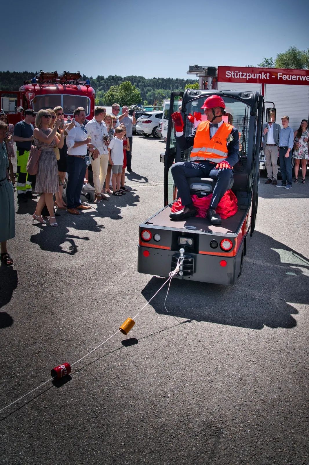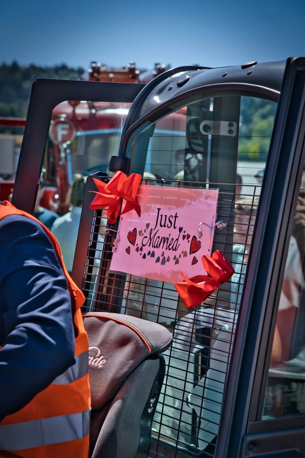 凯傲集团员工Julia Hürlimann和新婚丈夫坐着林德叉车举行婚礼