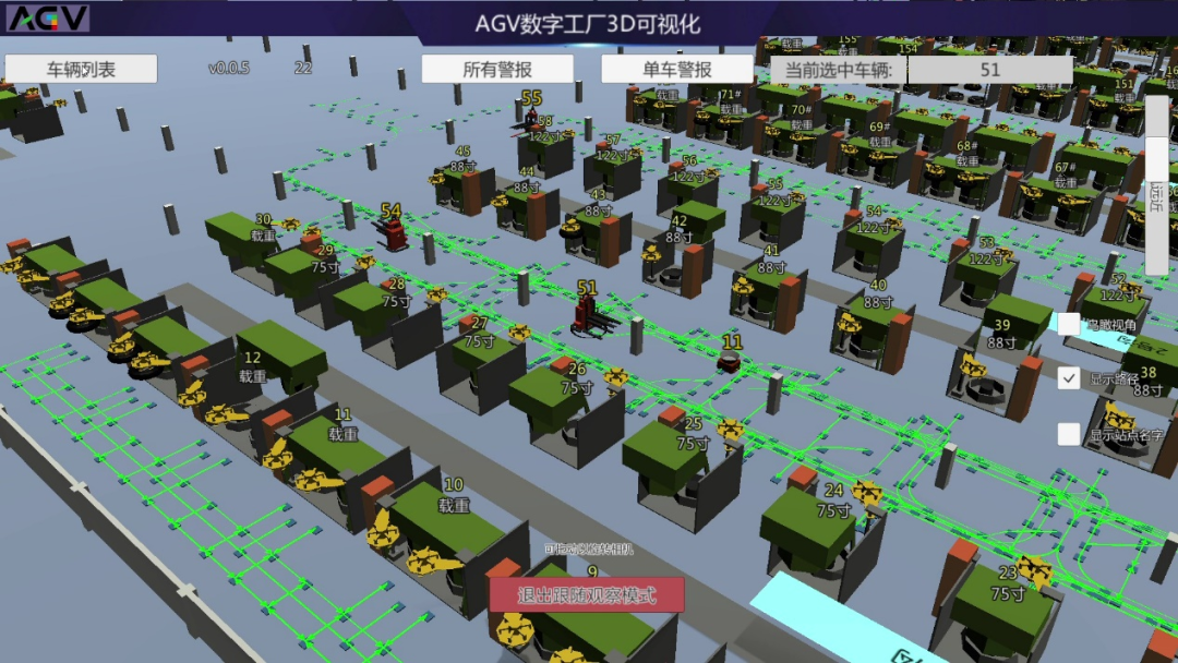 可以远程运维,3D数字化大屏展示,对历史搬运次数进行分析,展示,并开放数字化工厂接口;