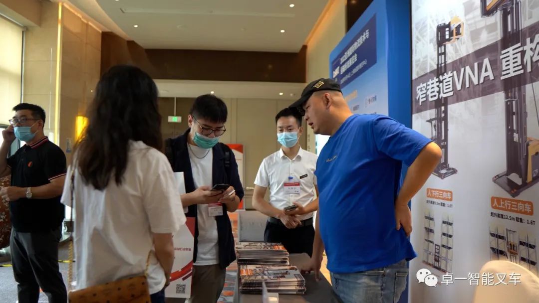 8日上午,卓一智能叉车营销总监敖总在会议上进行了《窄巷道VNA,重构仓储新空间》主题演讲,介绍了卓一智能叉车各产品的应用场景与产品优势。