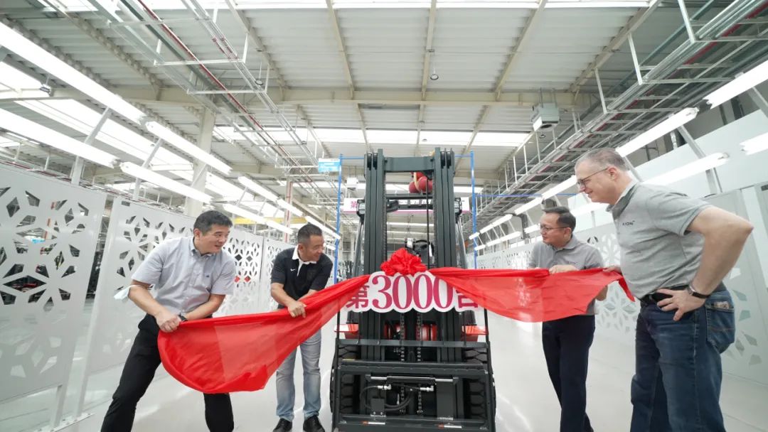 其后,郭总与员工们一起见证了凯傲济南工厂第3000台叉车发车仪式。从第一台叉车下线,凯傲济南历经疫情供应链紧张等各种考验,迅速实现产能的逆势增长。作为凯傲中国发展的新一大引擎,凯傲济南不断聚合推动力,蓬勃向未来。