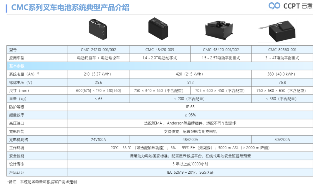 云宸新能源的叉车锂电已经批量配套于国内某些叉车品牌,并在各种工况下经过长时间检验,得到用户的认可和好评。未来,云宸新能源加大对电动叉车锂电产品开发力度,不断推出新的产品,服务于更多品牌的主机厂和叉车后市场。
