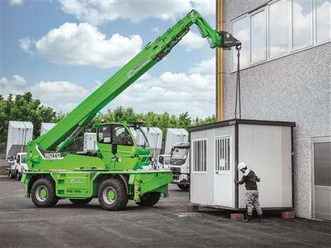 Merlo(AMS)目前向北美市场提供六种型号的旋转装置,提升高度从69英尺到115英尺,提升能力从11,000磅到15,400磅。该公司今年向北美市场推出了几个新的型号,包括R70.24 S PLUS,它可以处理高达15,430磅的重量。