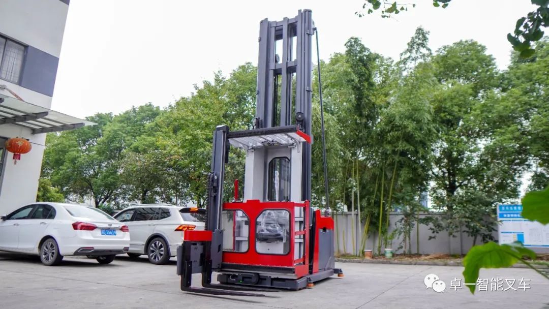卓一智能叉车拥有丰富的医药行业物流仓储经验,在深入了解该企业生产、仓储区域物流的特性与难点后,卓一结合客户现场的具体需求,为其定制了起升高度可达13.5m的人上行三向叉车。