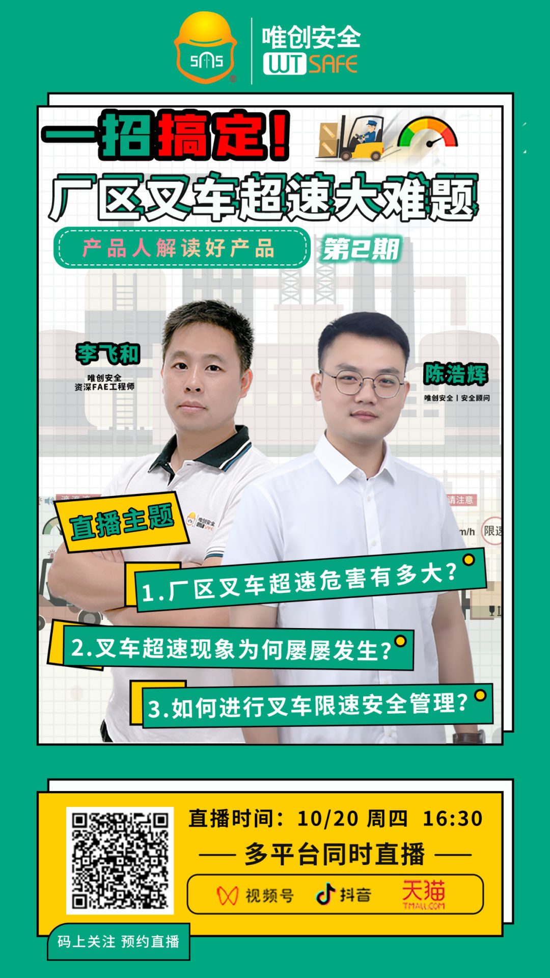 本周四下午四点半直播,特别邀请到产品FAE工程师李飞和与安全顾问陈浩辉一同为我们支招,搞定厂区叉车超速大难题: