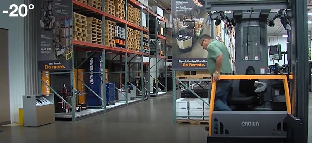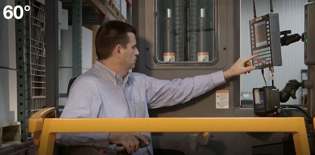 当座椅旋转60°时,驾驶员可直面仓库管理系统,方便作业以及上下叉车。