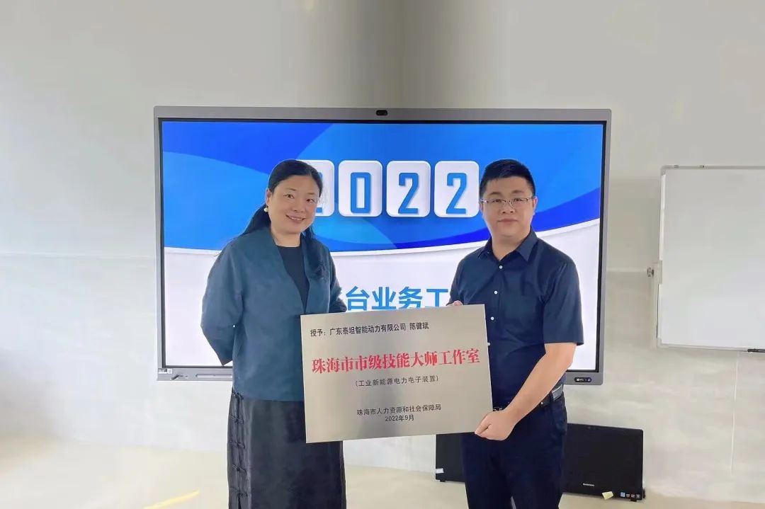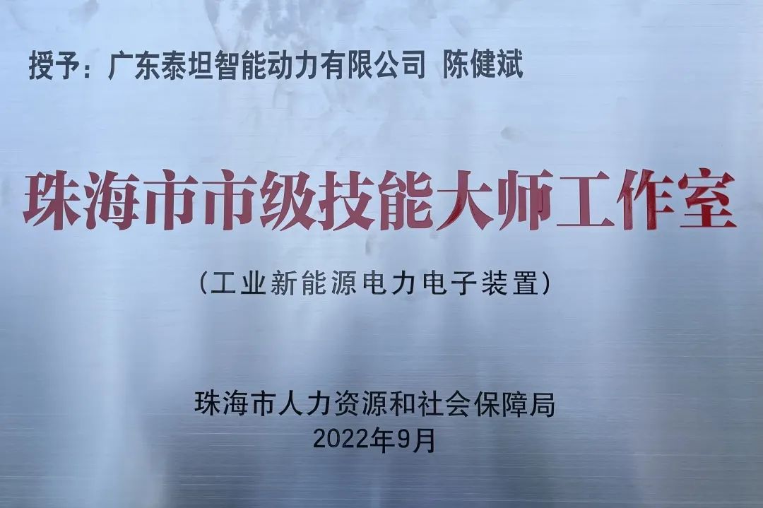 2022年10月21日,珠海市人力资源和社会保障局职训中心部长正式向广东泰坦智能动力有限公司(陈健斌工业新能源电力电子装置技能大师工作室)及另外三个技能大师工作室授牌。