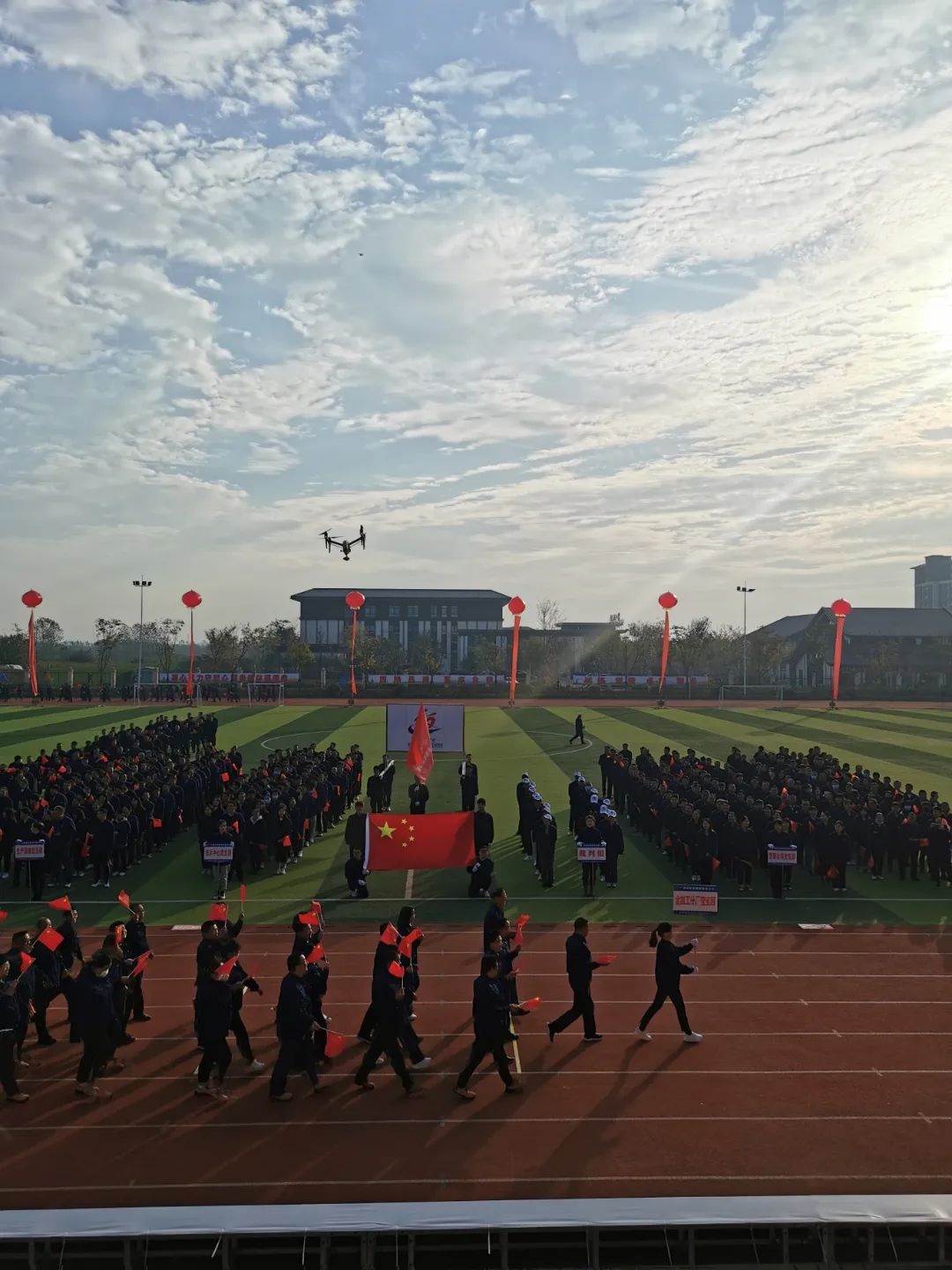 运动会开幕式入场仪式由国旗队、公司旗、会徽组成的前导方阵拉开序幕,伴着振奋人心的《运动员进行曲》,前导方阵、裁判员方阵和10个党支部组成的运动员方阵依次入场,统一身着全柴集团制服,精神饱满,迈着铿锵的步伐依次走入会场,经过主席台。