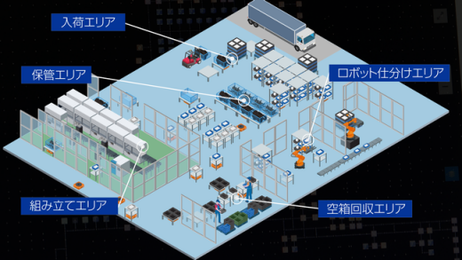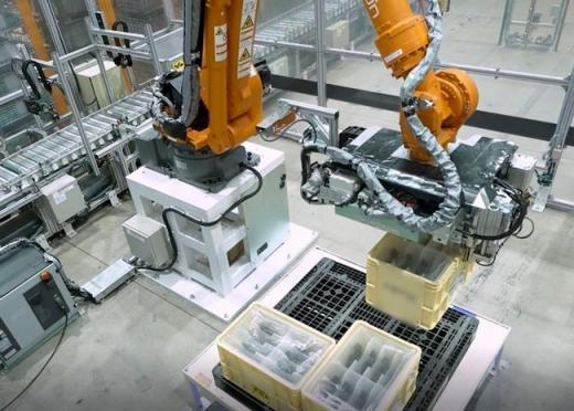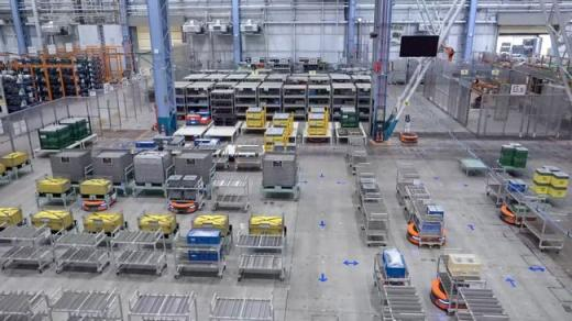 配备2台可回收箱搬运智能机器人和31台AGV(Automated Guided Vehicles),自动识别50余种可回收箱,预计人力减少三分之一。构建了下一代供应系统,可以在适当的时间自动执行装配前和装配后过程,例如零件分配/存储和空箱收集。