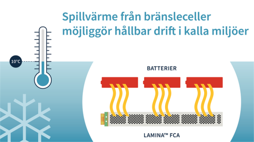 当与燃料电池结合时,温度下降时电池失去容量的问题就消失了。来自燃料电池的废热使燃料电池和电池都被加热到一个有利的室温,使电池能够保持其电量。
