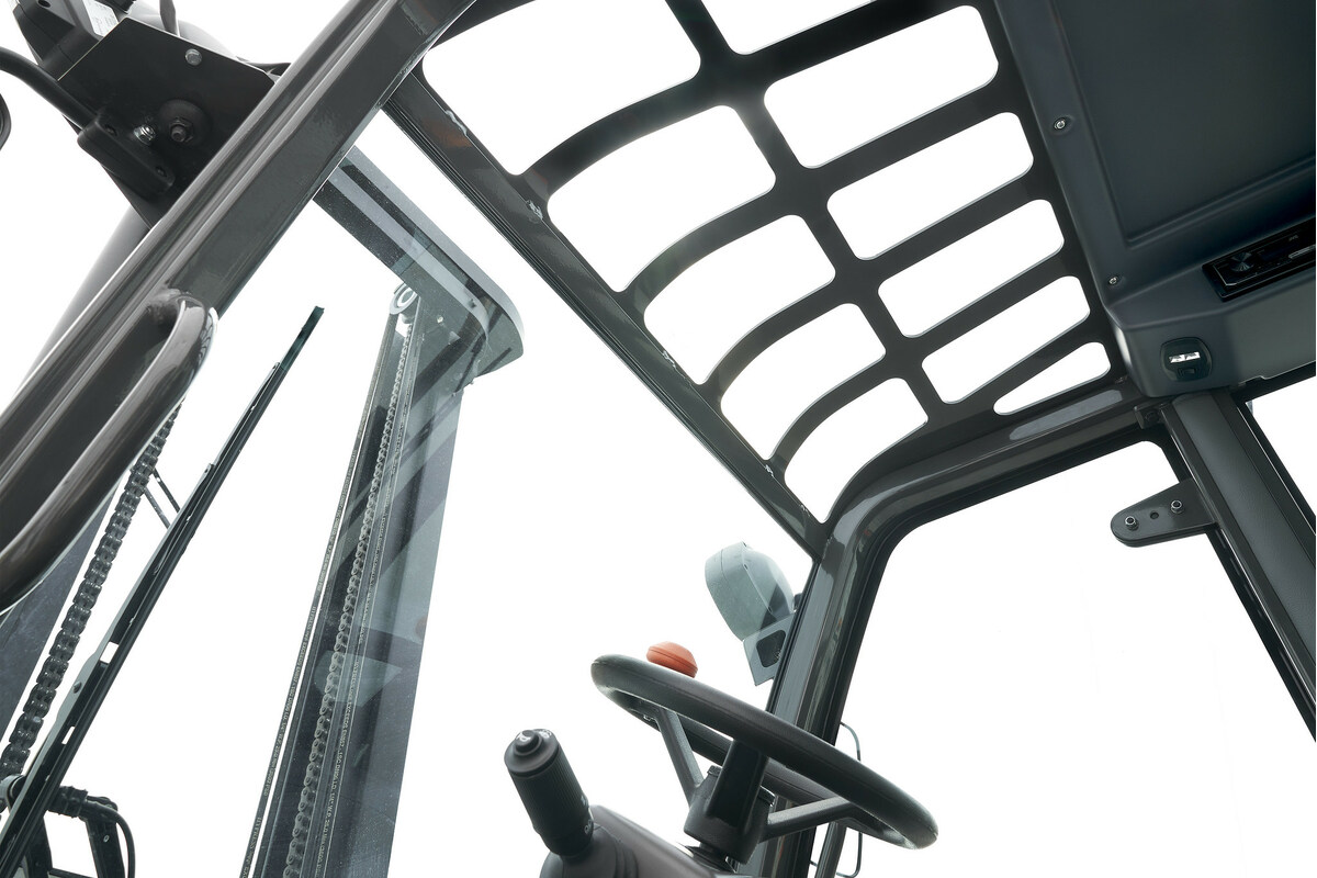 同样,重新设计叉车也使我们能够对驾驶室进行大修,改变其结构以将驾驶员的能见度提高 30%。同时,该机器与之前的型号一样紧凑:1,520 毫米宽。