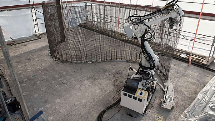 德国上巴伐利亚州考费林的Hilti公司也有一个半自动的钻孔机器人。总部位于奥格斯堡的机器人制造商库卡开发的原型机已经在伦敦的维多利亚和阿尔伯特博物馆生产了一个碳和玻璃纤维复合物料元件,为比利时的一家建筑公司打印了3D外墙,或者将木板铣削并粘在一起。