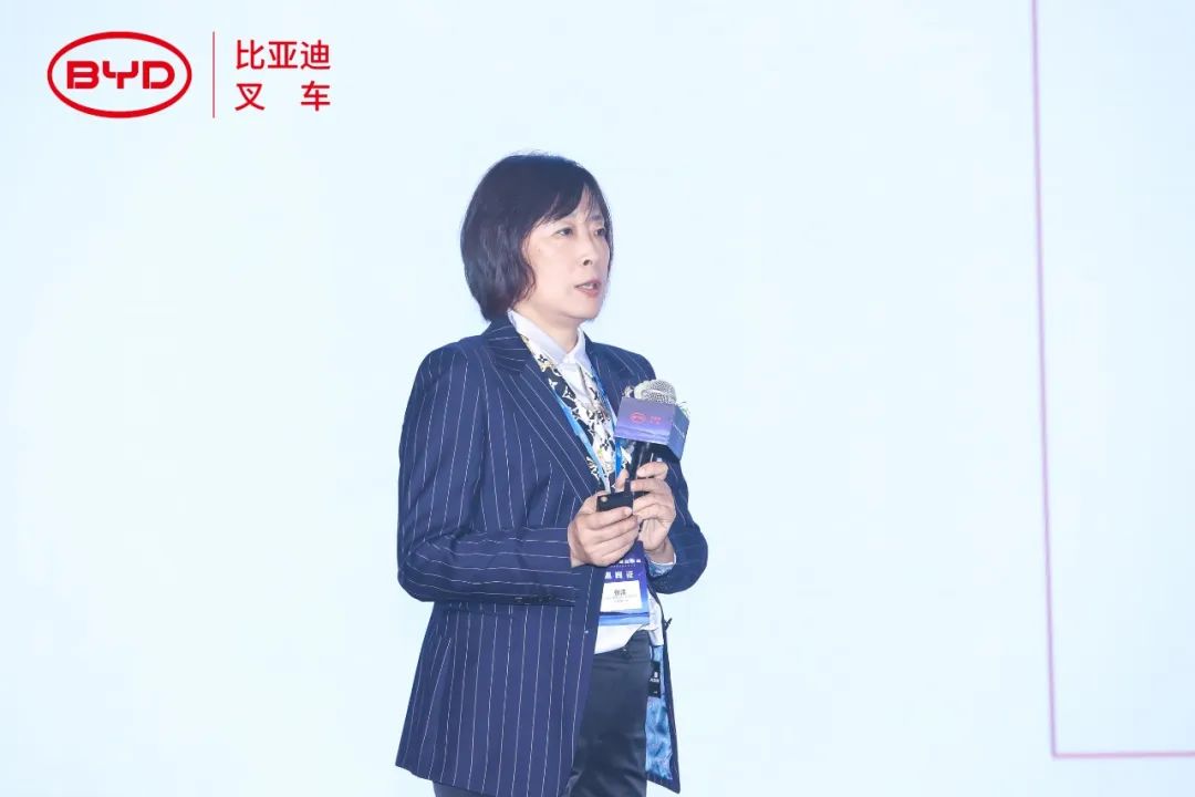 在美丽的杭州,于碧波荡漾的钱塘江边,比亚迪叉车再会高朋,本次大会现场,比亚迪叉车销售总监陈丽萍女士首先向在座来宾致欢迎辞。