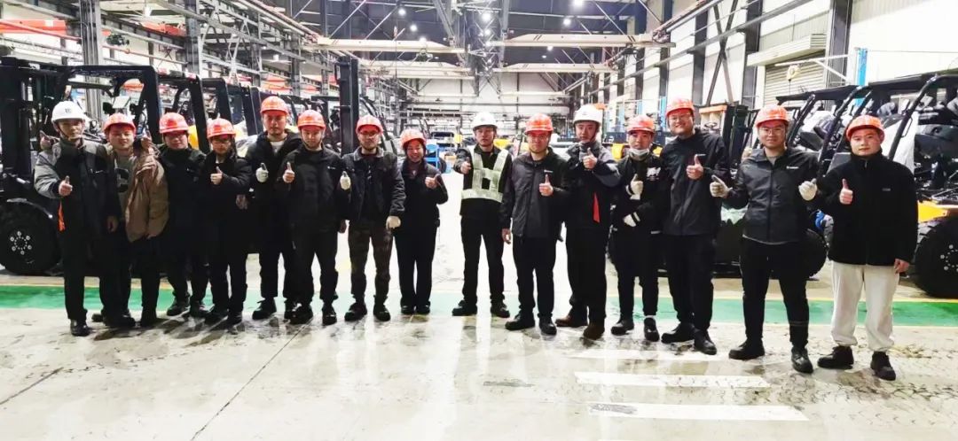 元宵佳节刚刚过去,海内外订单不减,车间内正开足马力抢抓生产。为保障订单能够按时交付,弘扬柳工“899”精神,2023年2月9日,叉车公司各业务单元组织了青年突击队,加班加点,协同装配线生产完成高产任务,圆满完成了当日整机装机任务量。同时,技术质量团队也奋战在一线,为工艺方法和装备的快速改善而精益求精。