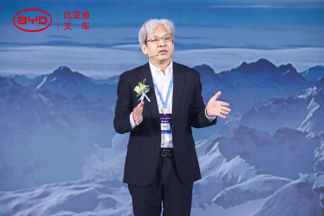 接下来,由比亚迪叉车总经理毕国忠先生致辞,毕总首先对在座嘉宾的莅临表示感谢,并指出2022年在疫情影响之下,行业增长乏力,比亚迪叉车迎难而上,取得突破性增长,并创造了历史性佳绩。