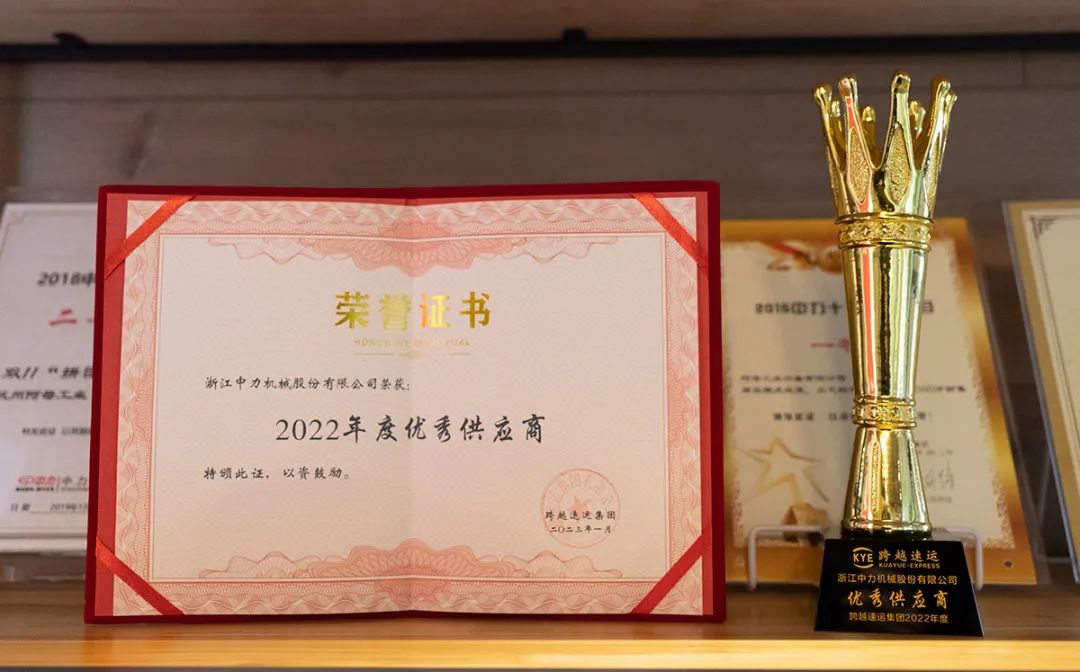 2月8日,中力荣获跨越速运2022年度“优秀供应商”奖