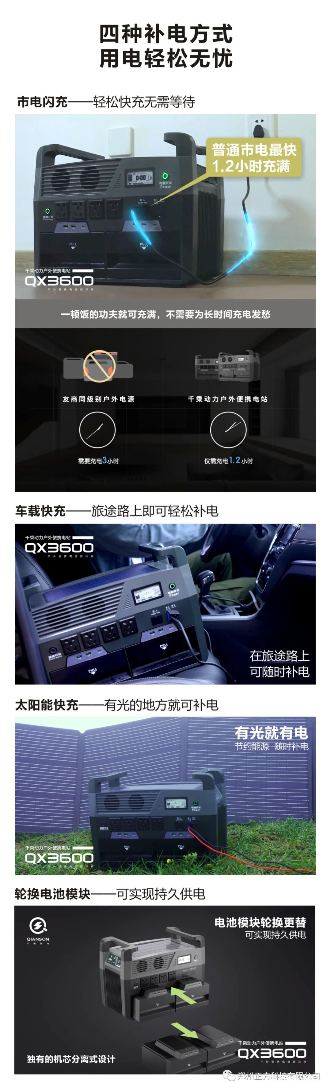 一台千乘动力QX3600户外便携电站即可解决啦!