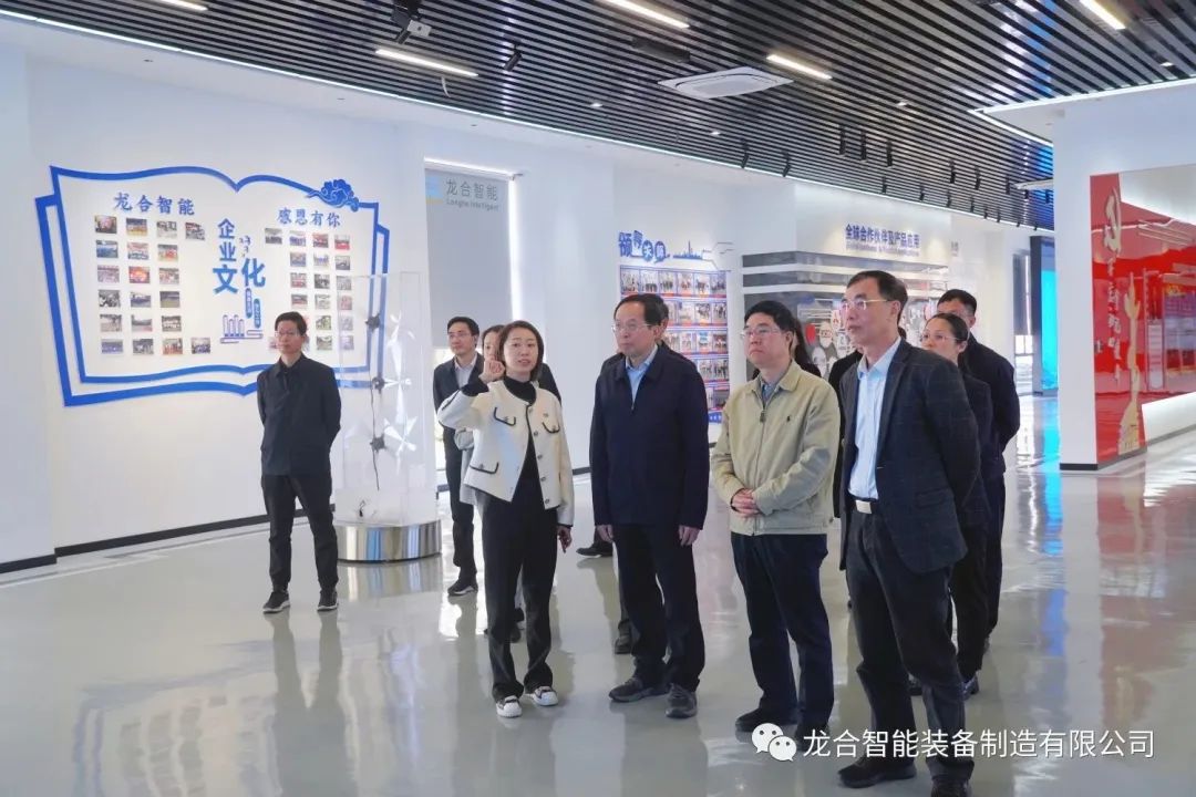 黄祥谈主任一行参观了龙合智能数字化党建文化展厅,认真听取杨静董事长就企业发展历程、产品工艺及产业链布局等内容汇报,详细了解我司生产经营、产品研发及人才培养等情况。黄祥谈主任一行对龙合智能致力于解决物流搬运难题的使命及在智能制造行业中所取得的成绩给予了充分肯定,并针对我司市场发展规划提出指导建议及意见。