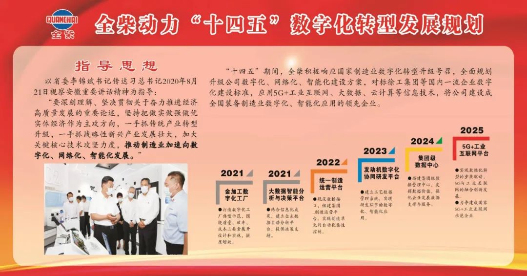 “十四五”期间,全柴积极响应国家制造业数字化转型升级号召,全面规划升级公司数字化、网络化、智能化建设方案。