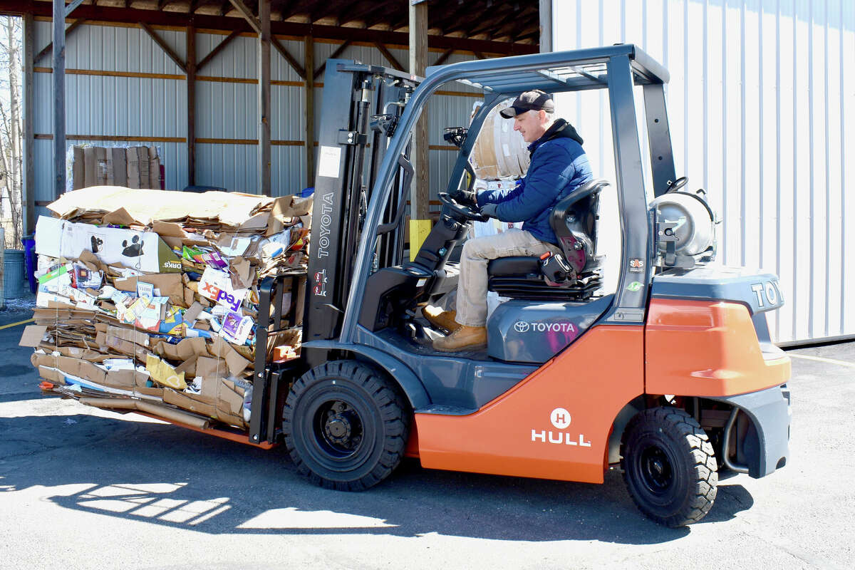 3 月 27 日,废品回收站 Recycle Mecosta 购买了一台新的丰田叉车,购买该叉车的目的是提高搬运回收废品的速度。