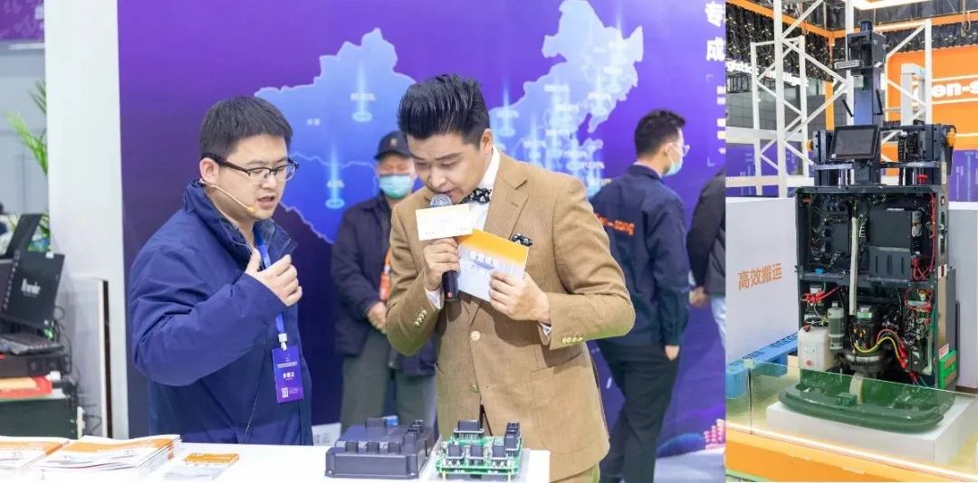 在展示区内,井松智能多款AGV“各司其职”,叉取货物后依次完成快速通行,原地旋转、安全避障等动作,呈现地堆搬运、灵活避障、密集存储等多种无人化作业场景;小巧灵活的车身,大大拓宽车体应用范围;多导航方式、多系统接入,适用强部署快,已成为各行业推广智慧物流的解决范本。