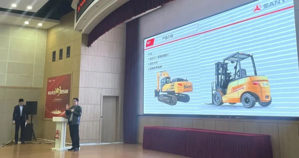 随后,三一机器人公司叉车项目总经理冯振礼和营销总监胡柱先后为与会领导和代表详细介绍了智能叉车、智慧仓储物流及智能产线三大核心业务。