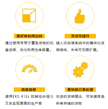凭借货架解决方案和叉车的高效组合,提高了周转性能