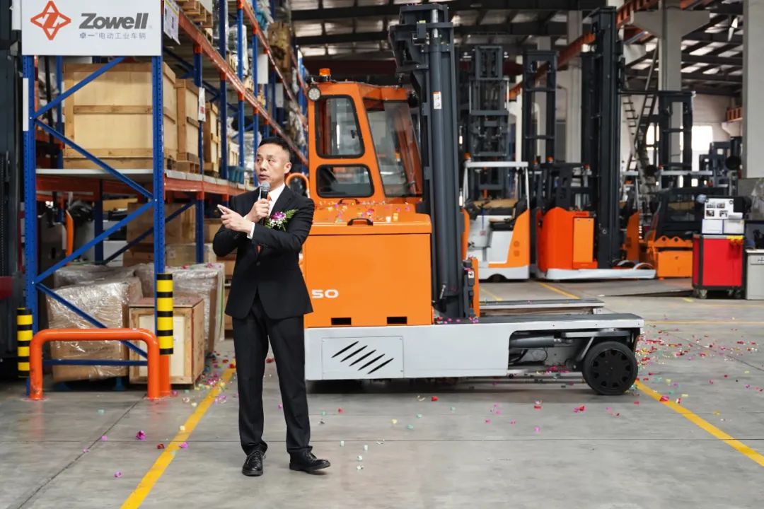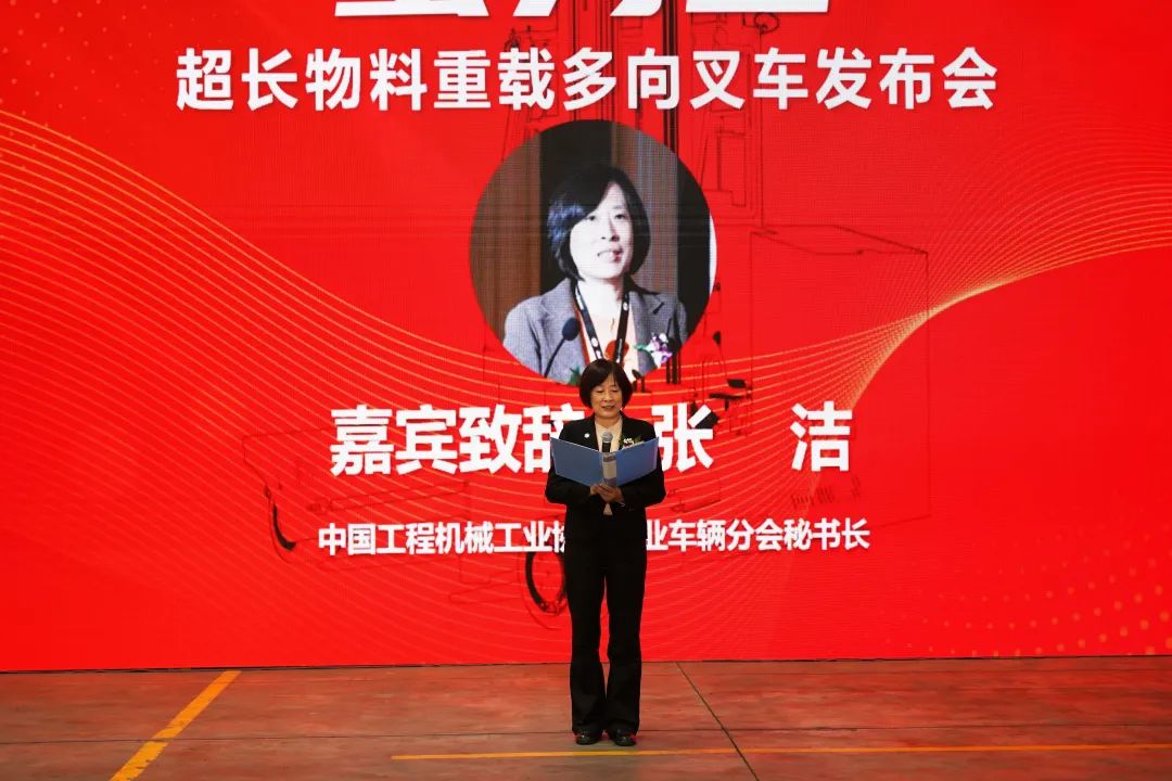 会议伊始,张洁女士向卓一多向叉车新品问世表达祝贺,并在致辞中表示,卓一一直专注于物流仓储的应用,瞄准市场,不断突破行业瓶颈,在电动乘驾式仓储叉车领域走出了自己的特色之路。