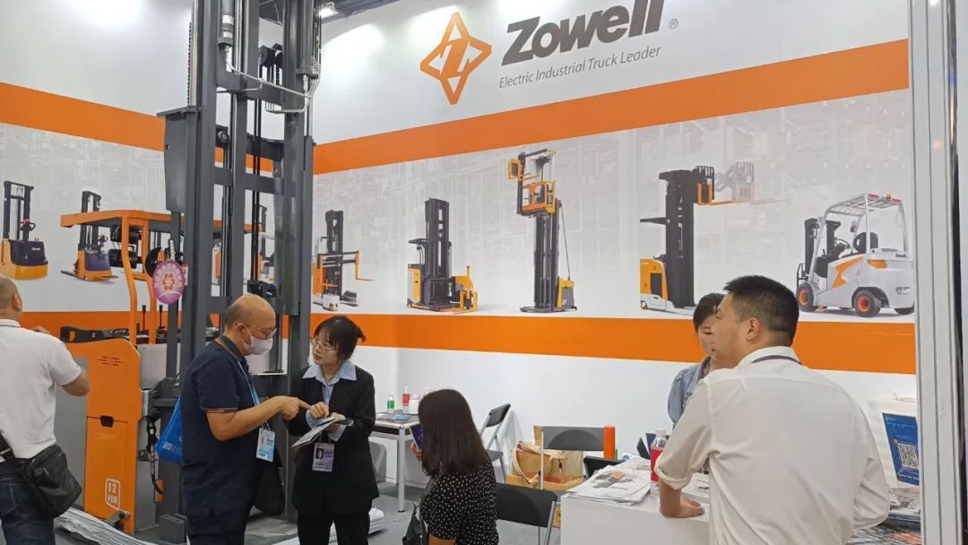 4.15-4.19.卓一智能叉车携窄巷道系列适用场景最为广泛的VNA人下行三向电动叉车亮相第一期展会现场。