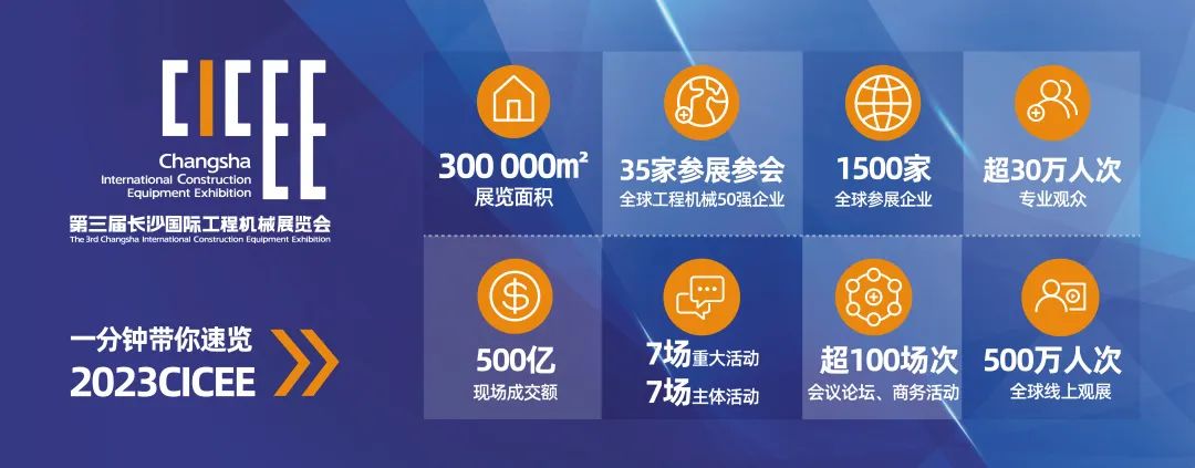长沙国际工程机械展是全新崛起的世界级工程机械展会,在展会规模、观众人数、参展世界50强企业数量、展会影响力,比肩全球三大工程机械展。第三届CICEE将于2023年5月在长沙国际会展中心举办,展览面积约30万平方米,参展商包括世界工程机械50强企业、世界500强和行业龙头企业等共计超过1000多家。现场还会举办超百场会议论坛、商务会谈等活动,集国际论坛、国际赛事、行业前沿技术交流、先进企业技术展示于一体。