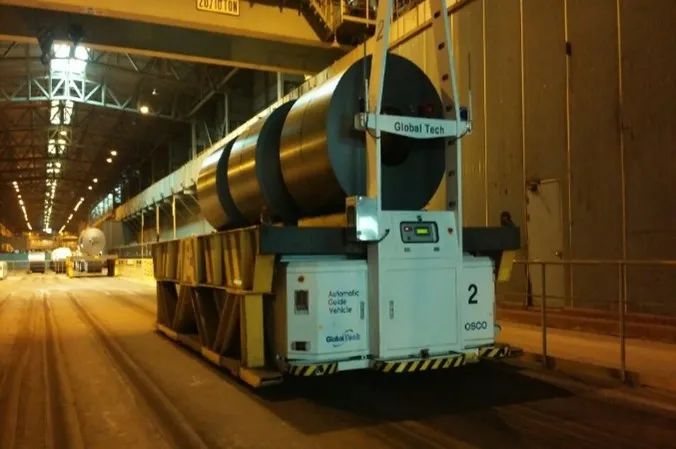 在欧洲和日韩一些钢铁企业,钢卷在不同车间,不同工艺段的运输工作,部分已经采取重型AGV来运输。重型AGV钢卷运输车辆解决了传统的天车物流不能过跨的痛点,并且AGV比过跨的轨道运输车辆在路径上更加柔性化。