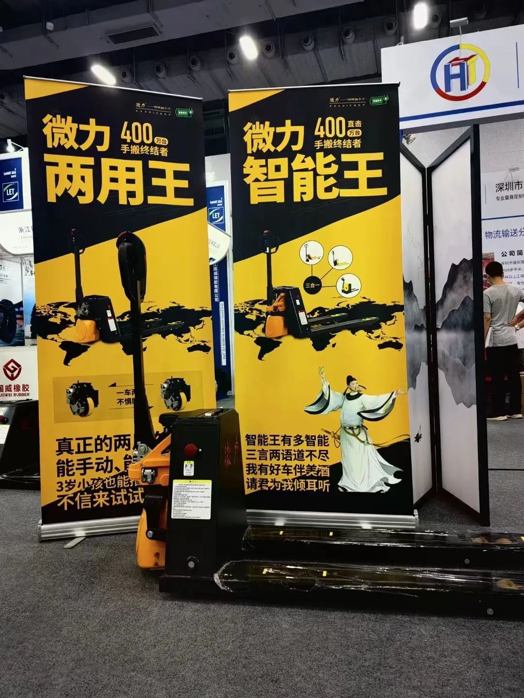 胡扬波:这次在展会上,我们关注到微力推出新型T20i两用金刚(微力2.0T智能两用锂电搬运车),据称是400万手搬叉车颠覆性产品,为何叫两用车?