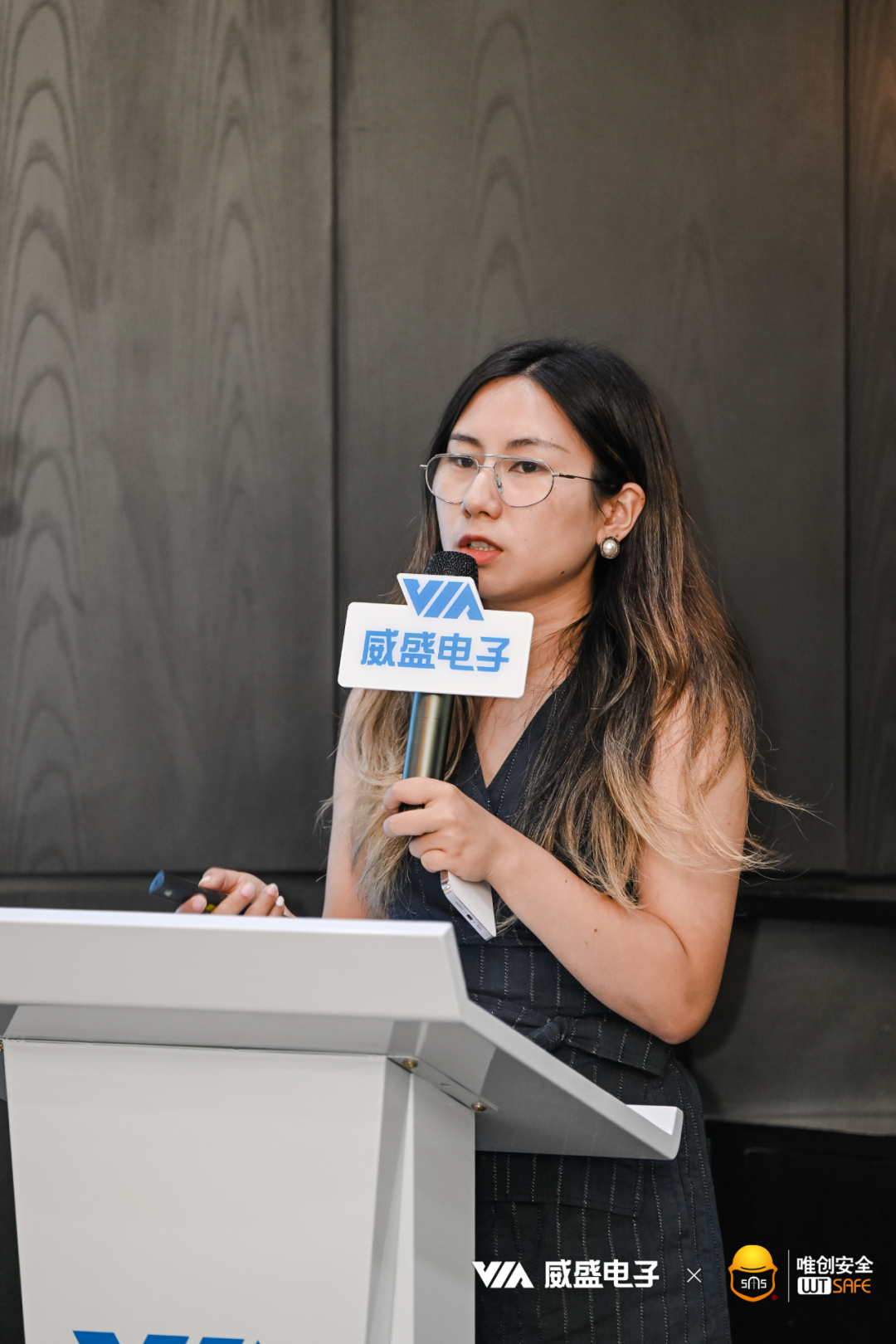 会议期间,威盛电子中国区产品项目部经理周江和威盛电子中国区资深市场部经理秦淑分别就“威盛集团及Mobile 360 车载安全技术 Road Map"和威盛集团及Mobile 360 AI安全案例”向与会嘉宾做讲解。