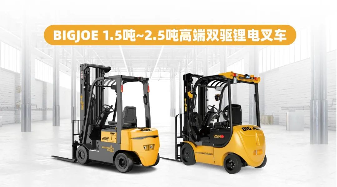 //BIGJOE 1.5吨~2.5吨高端双驱锂电叉车以更强动力、更专业设计满足更高搬运需求。