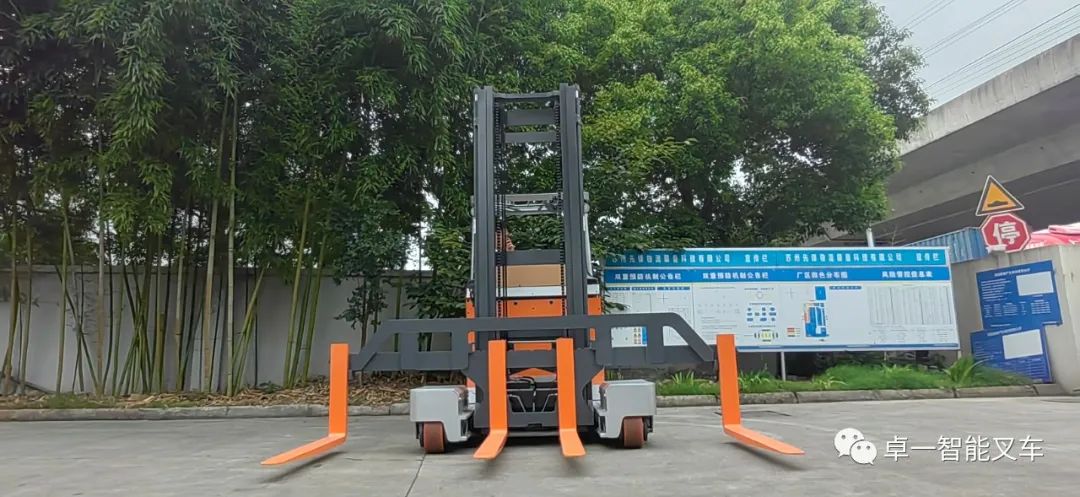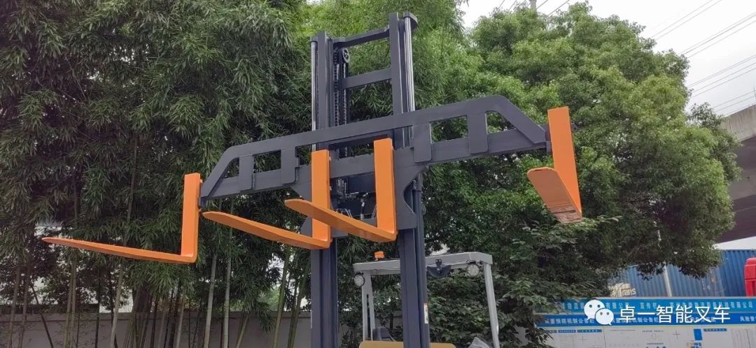 01 卓一深入了解了客户的实际应用场景,为全向车配备调距叉,以根据不同规格长物料的载荷宽度随时调整货叉宽度,为作业提供更大的灵活性和适应性,赋予全向车更高的经济效益;