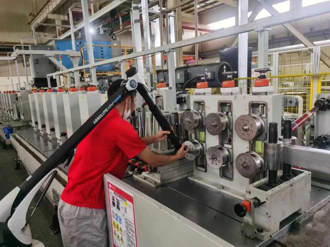 当时公司的刀片电池线需求不断增加,外供应商的产能限制已不能满足公司电池产能需求,电池铝壳供应已面临短缺停线,开发自制的铝壳线迫在眉睫。在制管机调试初期多次调试后无法达到工艺要求,吴松松建议使用三坐标、关节臂、跟踪仪进行协助调试。与工程师现场探讨、测试后,确定了基准,便立马推进。基于吴松松和工程师们的快速决断,项目进度如虎添翼,飞速完成调试并进行了生产试验。
