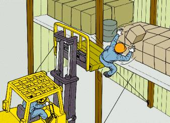 最后一叉货物装上去后,叉车开始后退,货叉还没有完全从货盘中伸出来时,卡车驾驶员就将卡车发动了,从而导致叉车侧翻,叉车驾驶员被压在了车下。