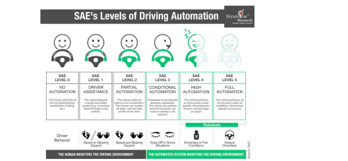 汽车工程师协会 (SAE) 设置了一定的自动化级别,范围从 0(完全手动)到 5(完全无人驾驶)。