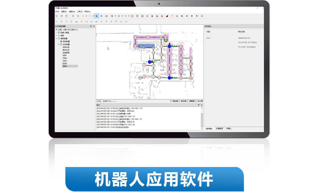 提供完善的地图管理功能,规划机器人行驶路线,配置机器人所要完成的任务。