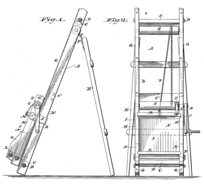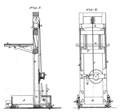 1867年,Van Sicklar为一种“新型升降机”申请了专利,该装置由直立框架、起重机和悬臂平台组成,既能提升又能运输物品。它可以连接到推车上,移动到工地。有了这项发明,工人可以轻松搬起货物。