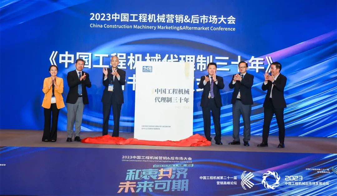 2023年是中国工程机械代理制发展三十周年,会上,《中国工程机械代理制三十年》新书首发仪式也同步举行。作为行业首创经销商制度的制造商,柳工为该书的编撰提供了详实的数据信息和宝贵史料。