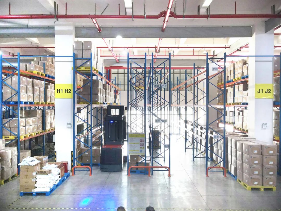 3. 该款叉车配备磁导航功能,仅操作加速器即可实现巷道内前进后退;车辆行驶至巷道末端自动减速,全方位保障安全的转运作业。