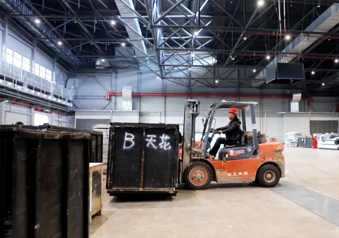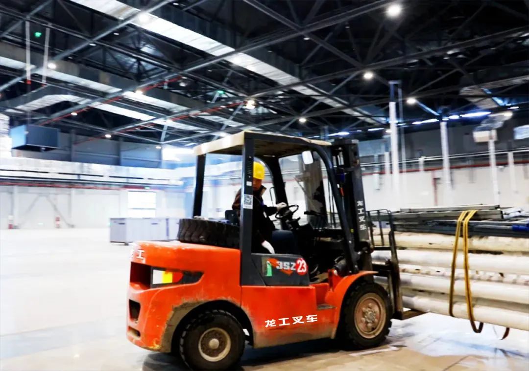 在展会场地的布局阶段,龙工叉车以其高精度的操作能力,协助主办方进行精确的场地测量和规划。根据不同的展位需求和参展商的要求,龙工叉车以其灵活的转向系统和强大的载重能力,快速、准确地完成了展位的搭建和布置。