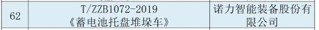 近日,2023年“浙江标准”认定名单公布,诺力智能装备T/ZZB1072一2019《蓄电池托盘堆垛车》成功入选。