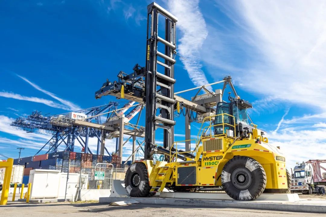 这款重箱堆高机是同类产品中的首创,预计每年可减少127吨二氧化碳排放,减少近半吨标准污染,目前该设备正在洛杉矶港的FMS码头进行试点。